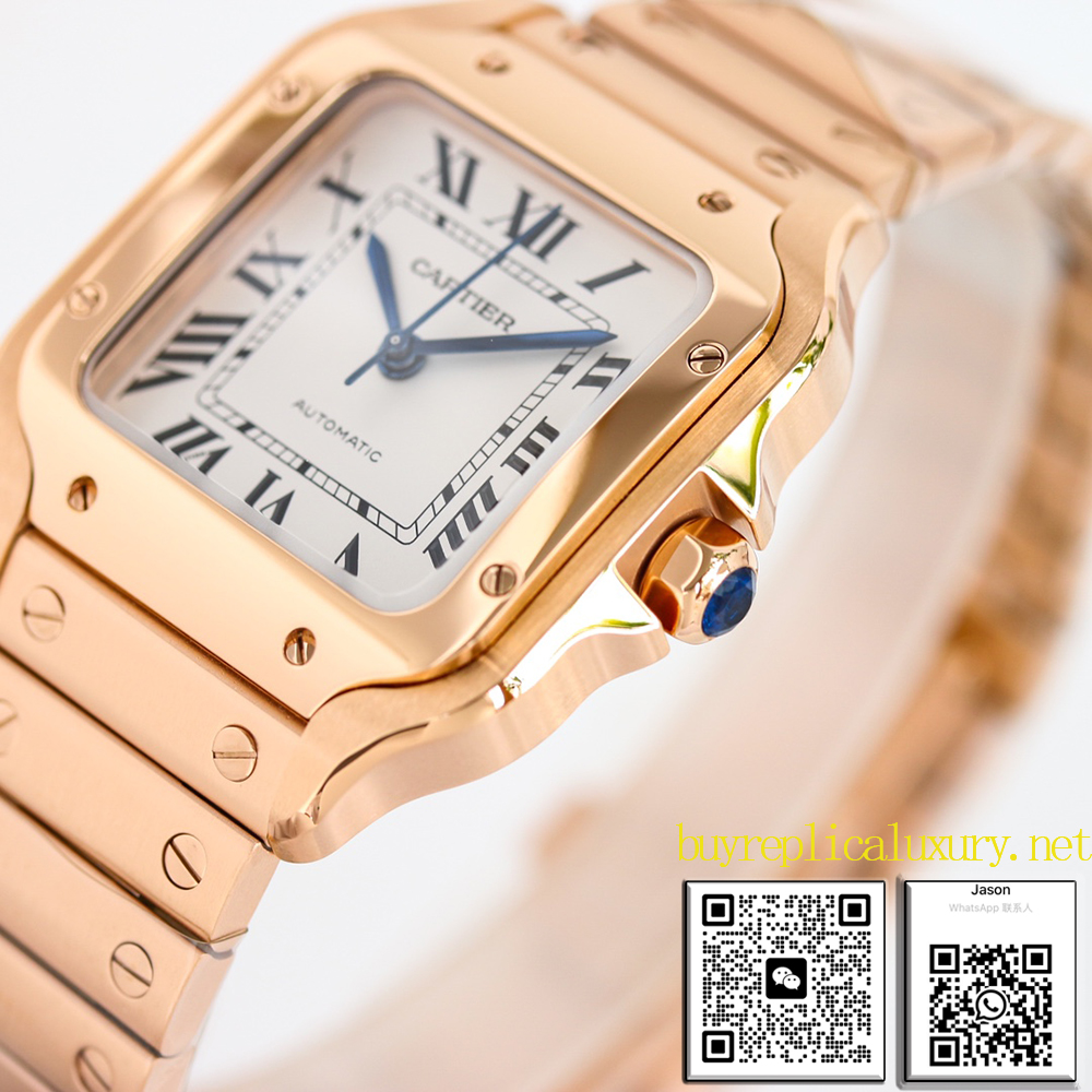 In short, the Santos de Cartier WGSA0031 is an exceptional timepiece that blends historical heritage with modern elegance and practical functionality. It is both a sophisticated piece of luxury jewelry and a reliable, everyday companion, perfectly embodying Cartier’s profound watchmaking expertise and unique aesthetic. It is ideal for watch lovers who seek classic design with modern convenience. Fake Cartier Santos de Cartier for sale, buy fake Cartier Santos de Cartier watch.