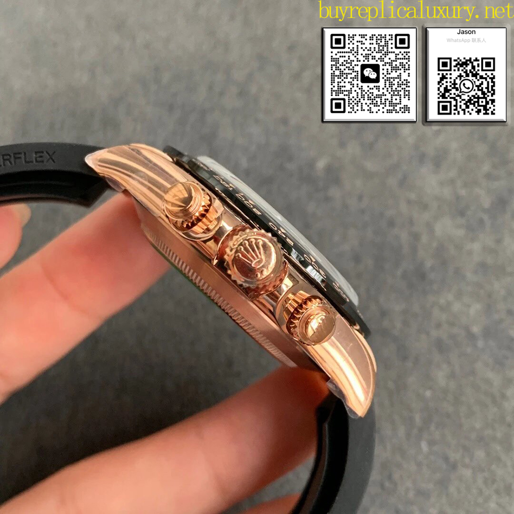 Bei der Gestaltung des Zifferblatts wählt LV2 oft kühnere Ansätze, wie etwa skelettierte Layouts, die den Blick auf die komplizierte Funktionsweise des ikonischen 4130-Uhrwerks freigeben. Gleichzeitig verleiht die Manufaktur den Platinen, Brücken und sogar dem Zifferblattboden des Uhrwerks den letzten Schliff. So werden sie passend zum Gehäuse mit Roségold beschichtet und mit komplizierten Gravuren oder weiteren Diamanteinlagen verziert. Auf diese Weise wird die luxuriöse Ästhetik innen und außen vereint und das funktionale Uhrwerk zu einem integralen Bestandteil des Kunstwerks. Kaufen Sie gefälschte Rolex Daytona LV2 Rose Gold, Wo kann man gefälschte Rolex Daytona kaufen?